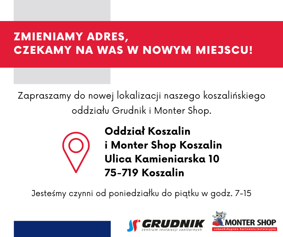 Zapraszamy do Oddziału Grudnik i hurtowni Monter Shop Koszalin