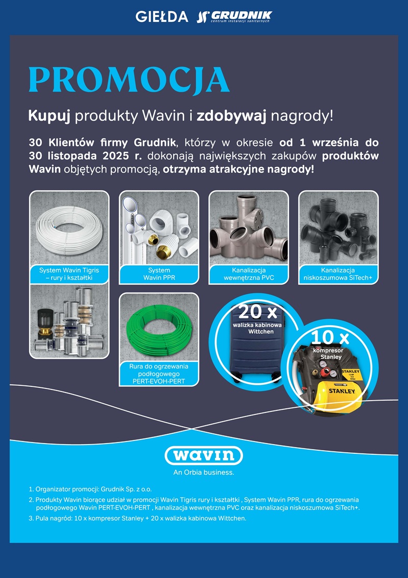 Grudnik: Hurtownia instalacyjno-grzewcza Promocje Promocja giełda 2025 Wavin