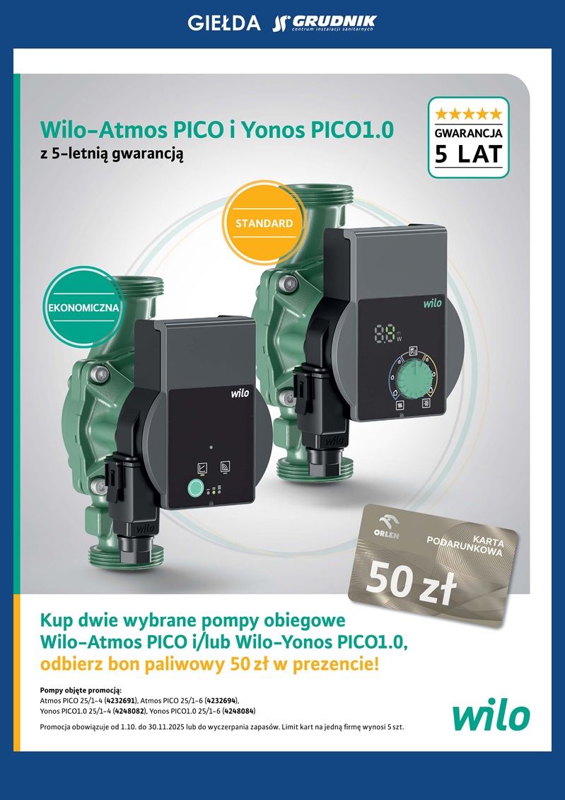 Grudnik: Hurtownia instalacyjno-grzewcza Promocje Promocja giełda 2025 WILO